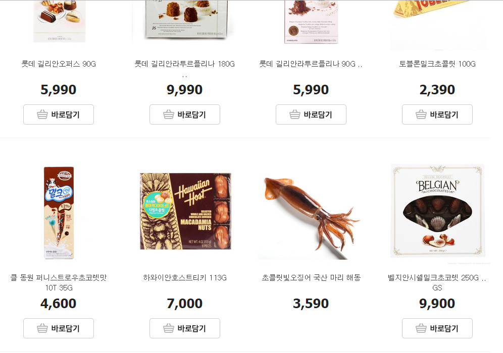 방금 전 쇼핑몰에서 장보는 중에 초콜릿을 검색했더니..